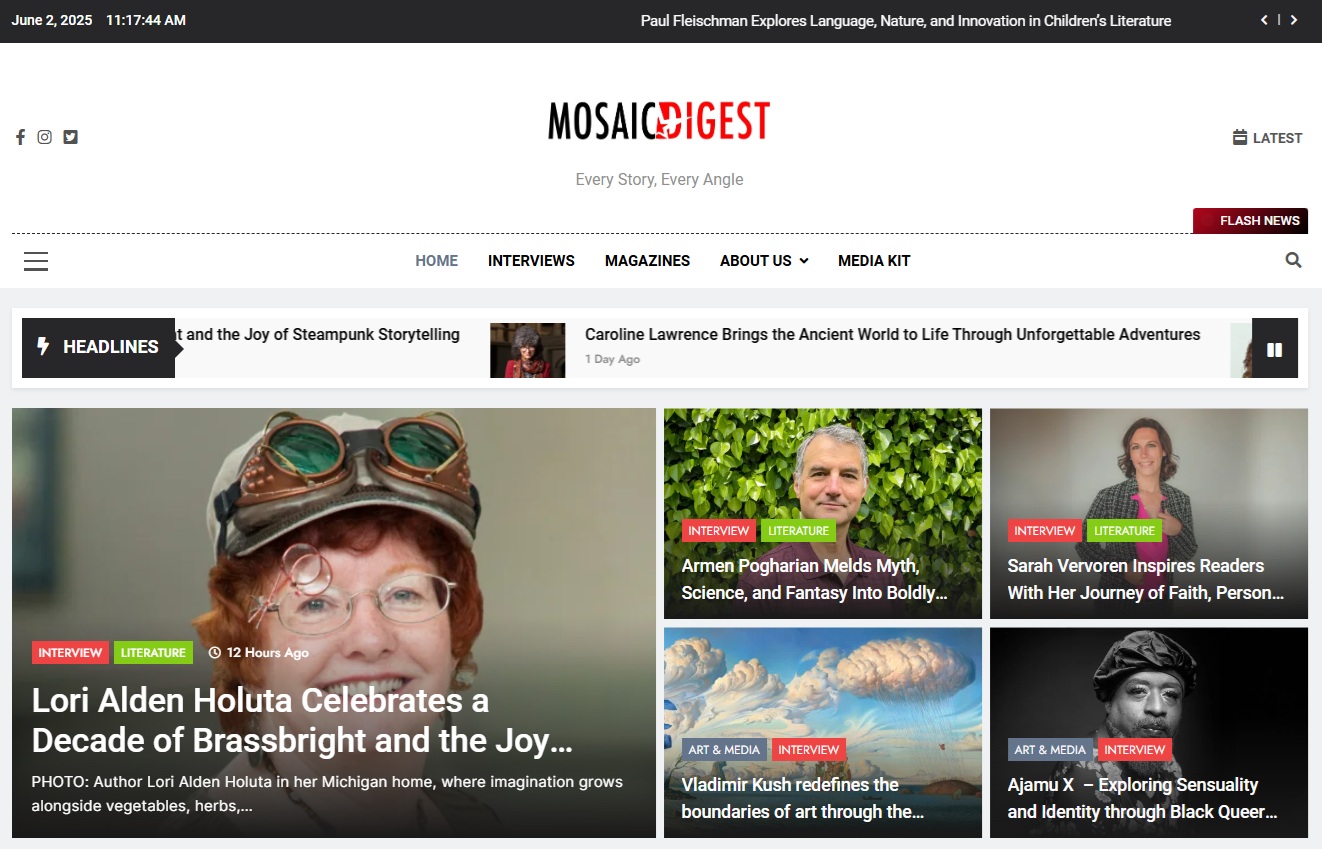 Mosaic Digest interviewed me recently, and it just went live this week. I talk about aspects of writing and my creative process that I haven’t mentioned before. Hopefully it entertains and inspired you! Lori Alden Holuta Celebrates a Decade of Brassbright and the Joy of Steampunk Storytelling